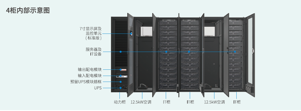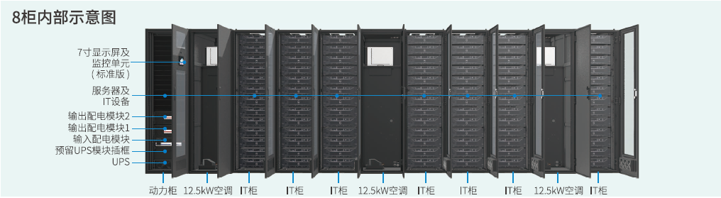 IDU(Integrated Data Center Unit)微單元數(shù)據(jù)中心產(chǎn)品,整合UPS及供配電系統(tǒng)、制冷系統(tǒng)及前后通道封閉系系統(tǒng)、消防系統(tǒng)、動環(huán)監(jiān)控系統(tǒng)以及機柜系統(tǒng)。產(chǎn)品主打快速部署、即插即用功能,為網(wǎng)點型終端、中小布局、迷你型數(shù)據(jù)機房客戶提供一體式解決方案。